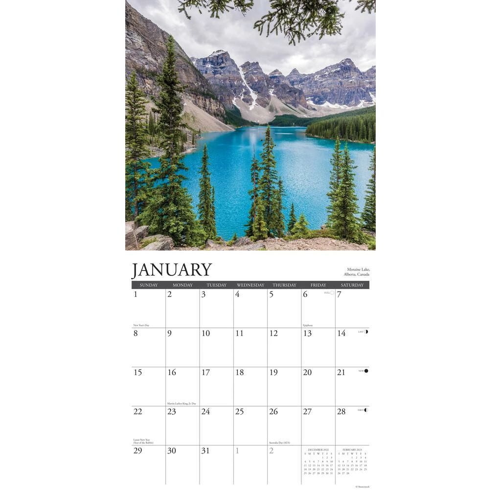“I hear lake water lapping with low sounds by the shore,” wrote William Butler Yeats, “I hear it in the deep heartβs core.” These twelve, full color lake view photographs provide a year of lakeside tranquility. Printed with soy-based inks on FSC certified paper, this 12″ x 12″ wall calendar features large monthly grids that offer ample room for jotting notes, along with six bonus months of July through December of 2022. Also includes moon phases (CST), standard U.S. and international holidays.