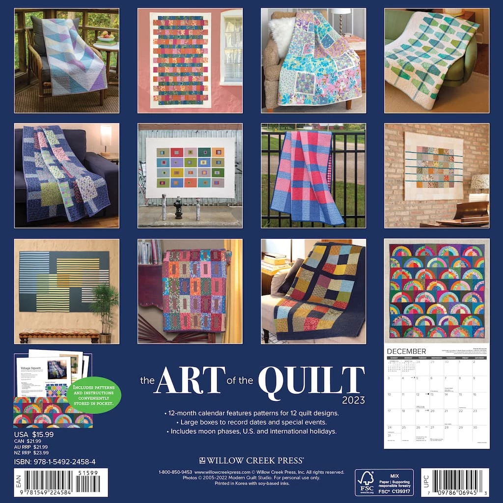 With its history rooted in American tradition, quilting has long been an activity meant to bring women together to converse and create. Celebrate the art of quilting as a time-honored craft and modern expression of individuality in this 12-month calendar, complete with monthly designs, patterns, and instructions by Weeks Ringle and Bill Kerr of Modern Quilt Studio. Printed with soy-based inks on FSC certified paper, this 12″ x 12″ wall calendar features a pocket with instruction sheets and large monthly grids that offer ample room for jotting notes. Also includes moon phases (CST), standard U.S., and international holidays.