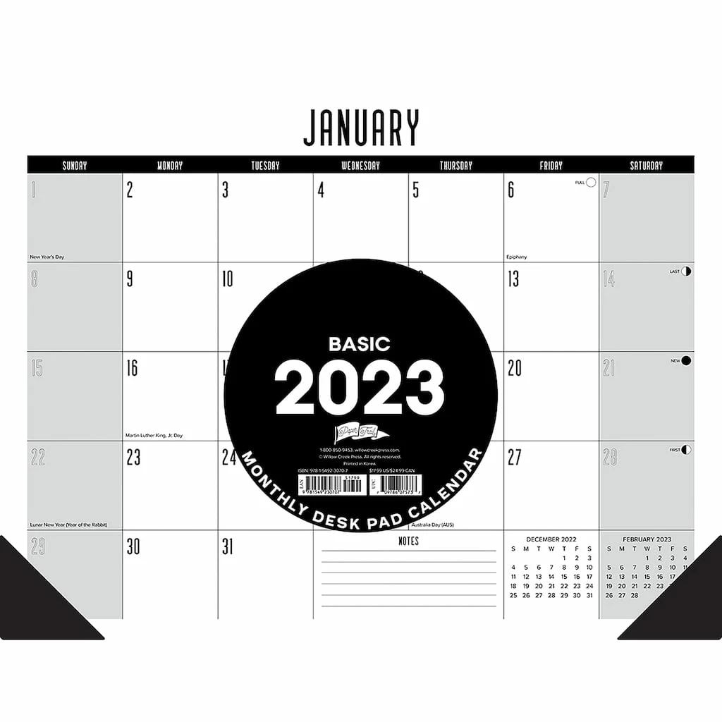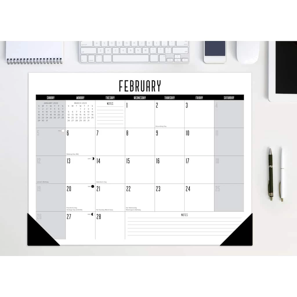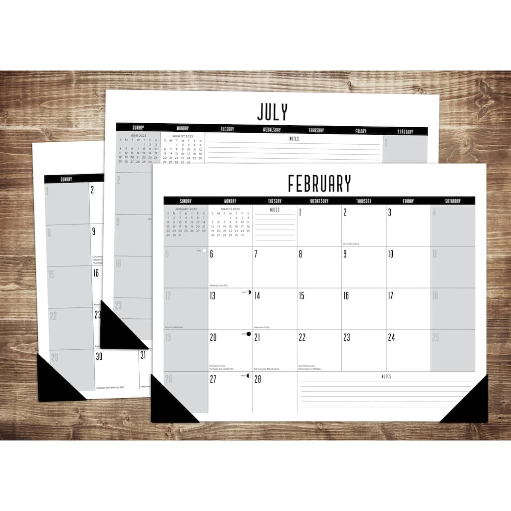 Whether you’re looking to dress up your desk or add some large-scale art to your wall, this is the desk pad calendar for you. The calendar also features a sturdy cardboard backer, punch holes for easy wall display, and corner pockets that will keep the pages flat throughout the year. Enjoy plenty of room to jot down your upcoming planner events and keep track of daily schedules at a glance.