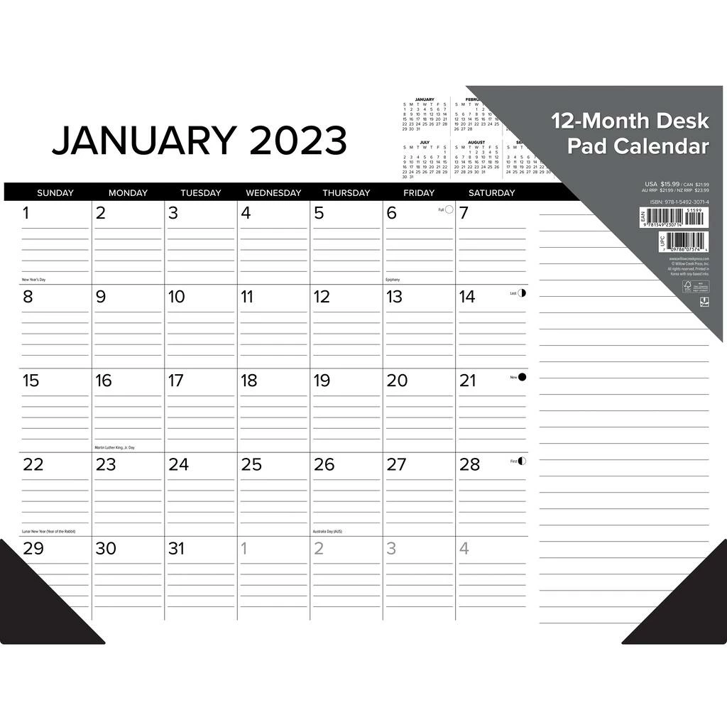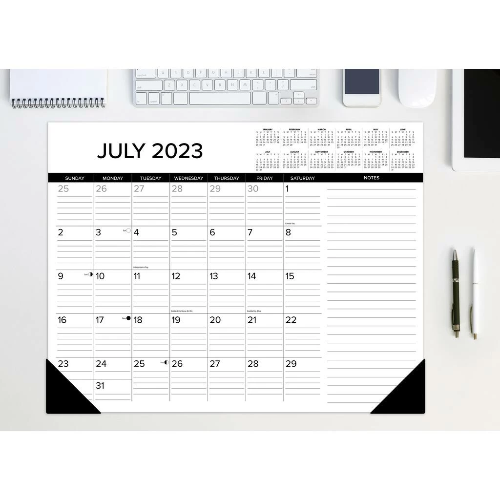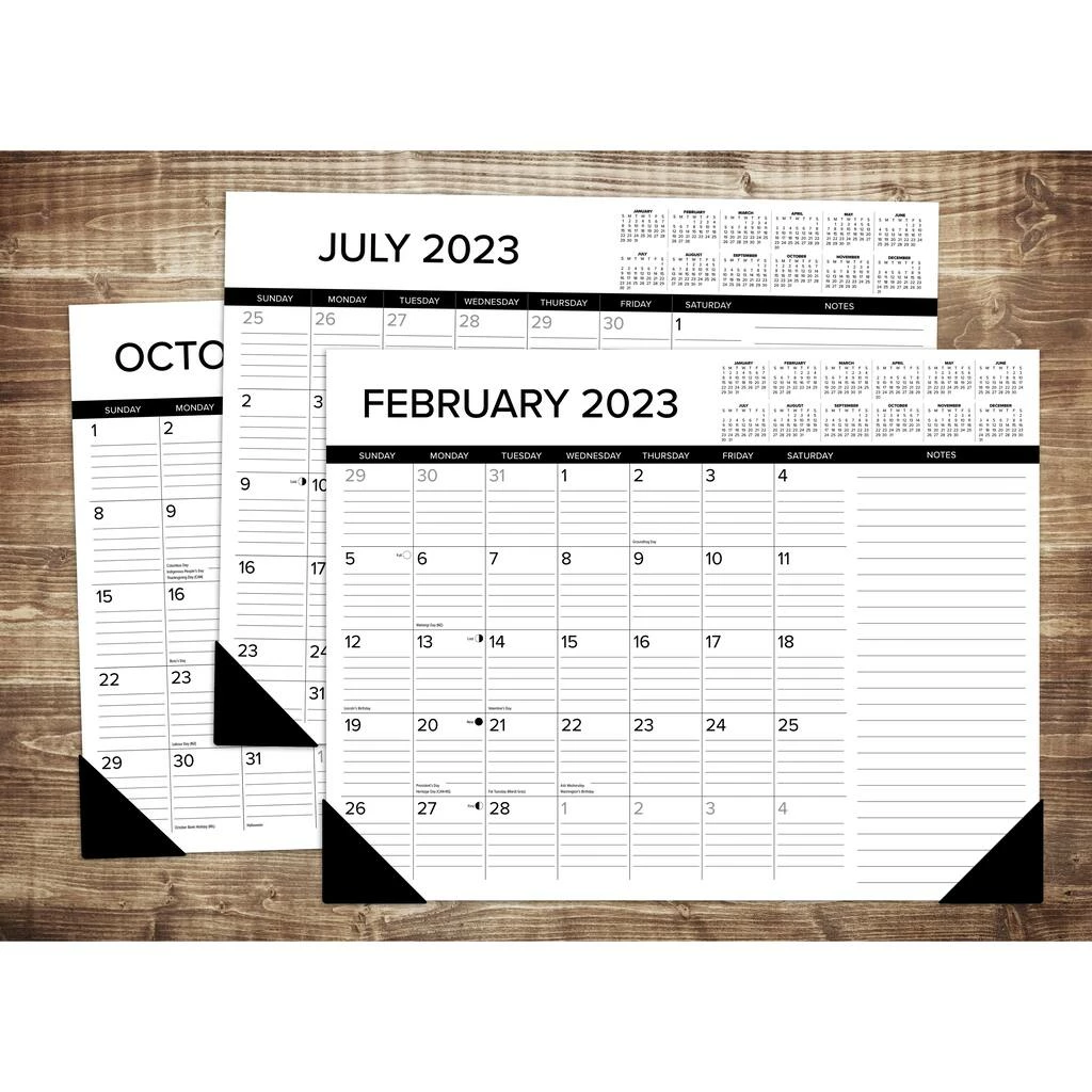 Our 12-month desk pad calendar serves as a functional part of every workspace. Enjoy plenty of room to jot down your upcoming events and keep track of daily schedules at a glance. Features corner pockets to keep pages flat, along with a sturdy cardboard backer.