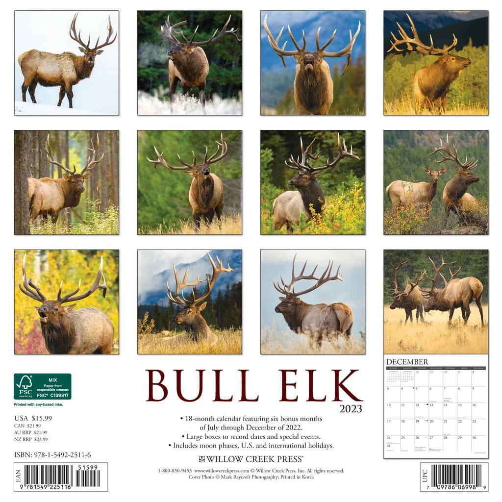 Why wait for autumn to be dazzled by the magnificent antlers bull elk are famed for when you can view them all year long? These twelve awesome full color photos feature some of the finest racks in North America! Printed with soy-based inks on FSC certified paper, this 12″ x 12″ wall calendar features large monthly grids that offer ample room for jotting notes, along with six bonus months of July through December of 2022. It also includes moon phases (CST), standard U.S. and international holidays.