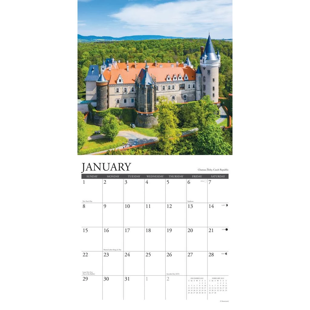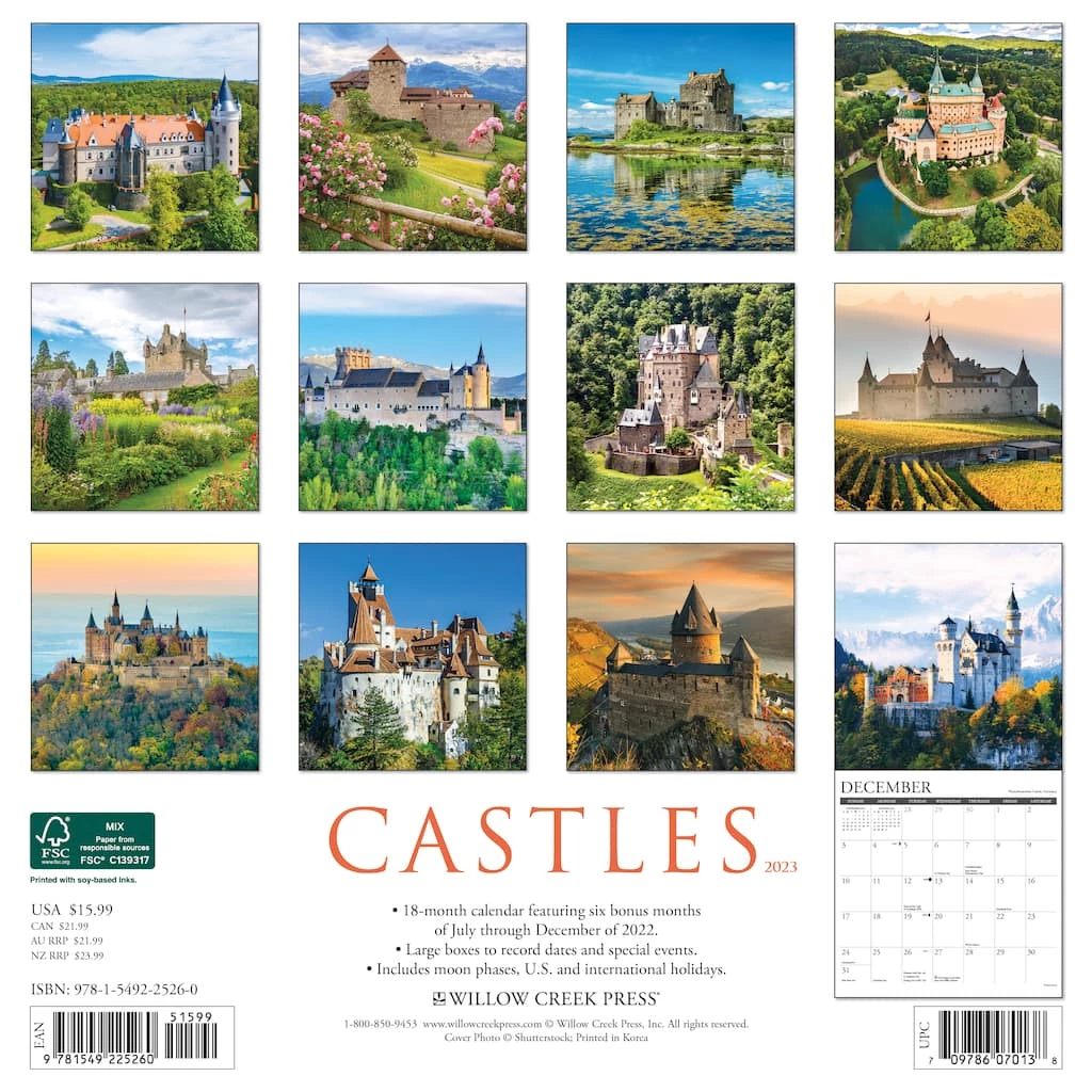 Marvel the medieval majesty of these magnificent castles across Europe and beyond. Art and architecture, fairy tales and history come together to celebrate the golden age of the Renaissance. Printed with soy-based inks on FSC certified paper, this 12″ x 12″ wall calendar features large monthly grids that offer ample room for jotting notes, along with six bonus months of July through December of 2022. It also includes moon phases (CST) and standard U.S. and international holidays.