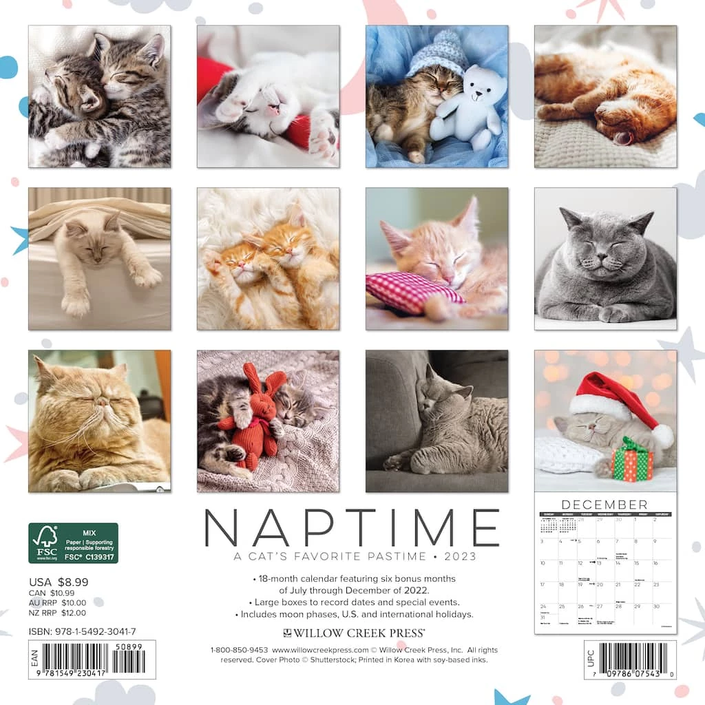 Whether they’re curled up in a sunbeam, or sprawled across your pillow, these fuzzy dreamers are too cute to disturb. Printed with soy-based inks on FSC certified paper, this mini wall calendar features monthly grids that offer ample room for jotting notes, along with six bonus months of July through December of 2022.