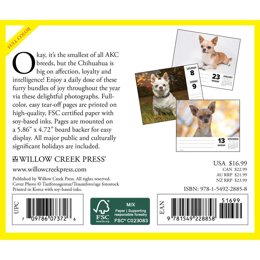 Okay, it’s the smallest of all AKC breeds, but the Chihuahua is big on affection, loyalty and intelligence! Enjoy a daily dose of these furry bundles of joy throughout the year via these delightful, full-color photographs. All major public and culturally significant holidays are included.
