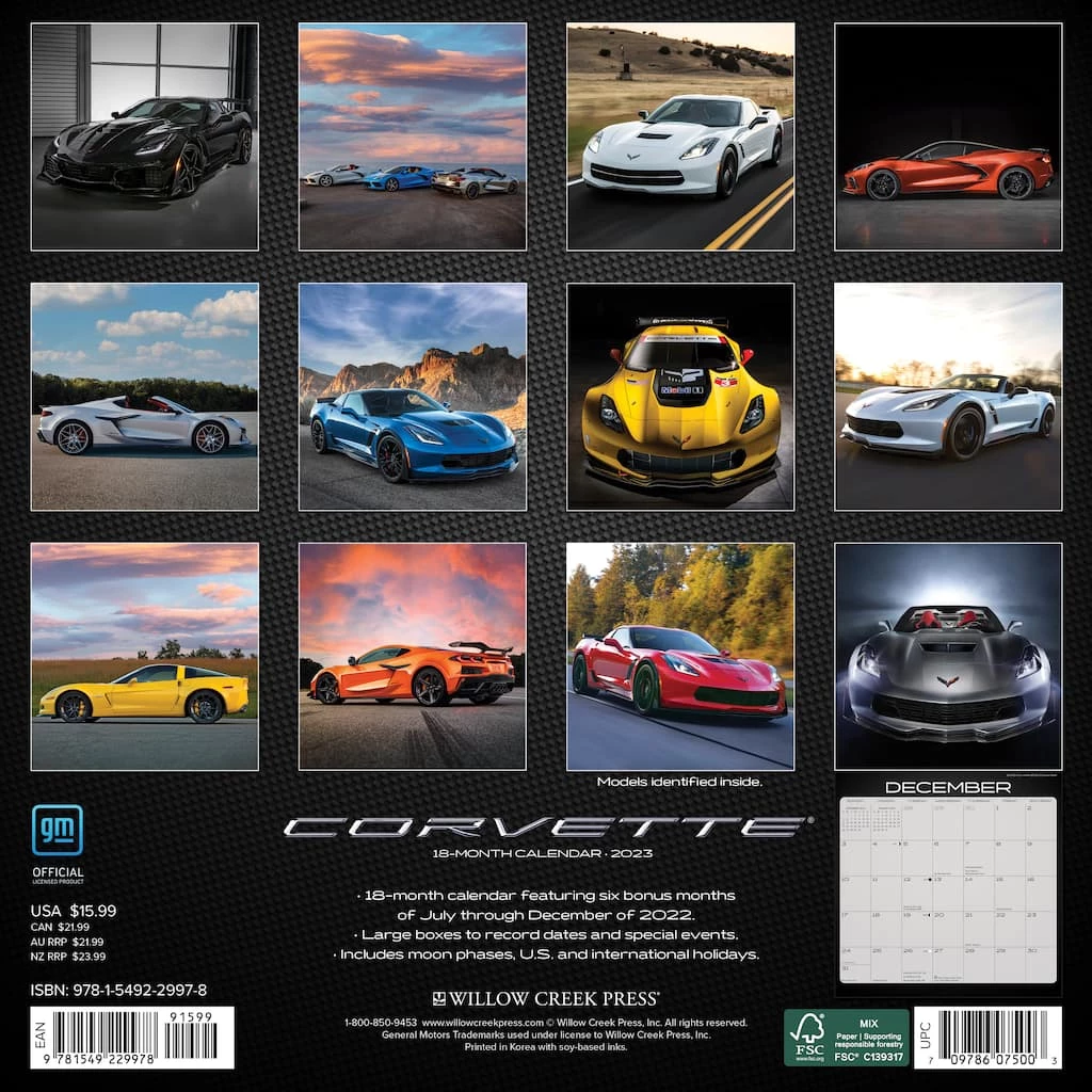 With over 60 years of history and eight evolutions of design, the ‘Vette is an American work of art. Printed with soy-based inks on FSC certified paper, this 12”x 12” wall calendar features large monthly grids that offer ample room for jotting notes, along with six bonus months of July through December of 2022. Also includes moon phases (CST), standard U.S., and international holidays.