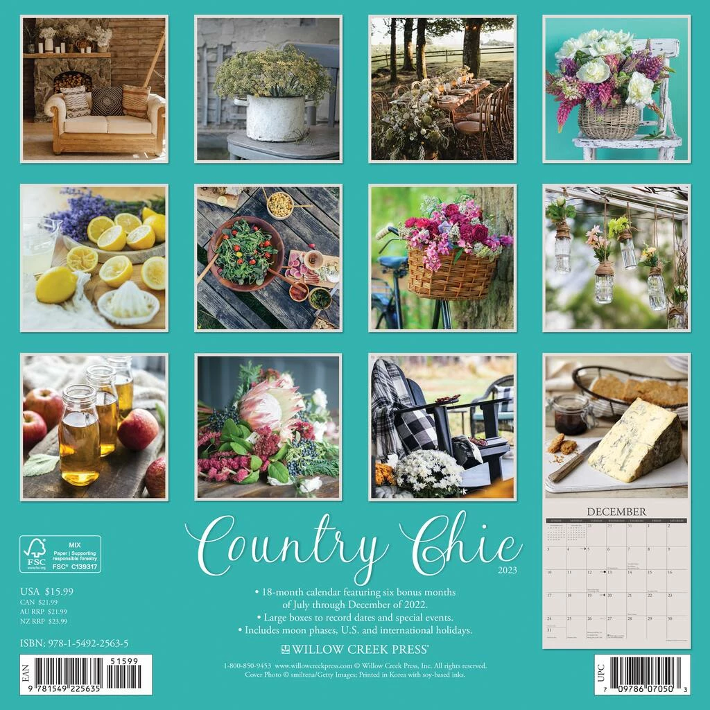 Do you love reclaimed barnwood, wildflowers, farm fresh eggs and mason jars? Country Chic is a calendar of simple beauty, homespun decor and an idyllic rural lifestyle that values all that is best in life. Printed with soy-based inks on FSC certified paper, this 12″ x 12″ wall calendar features large monthly grids that offer ample room for jotting notes, along with six bonus months of July through December of 2022. Also includes moon phases (CST), standard U.S. and international holidays.