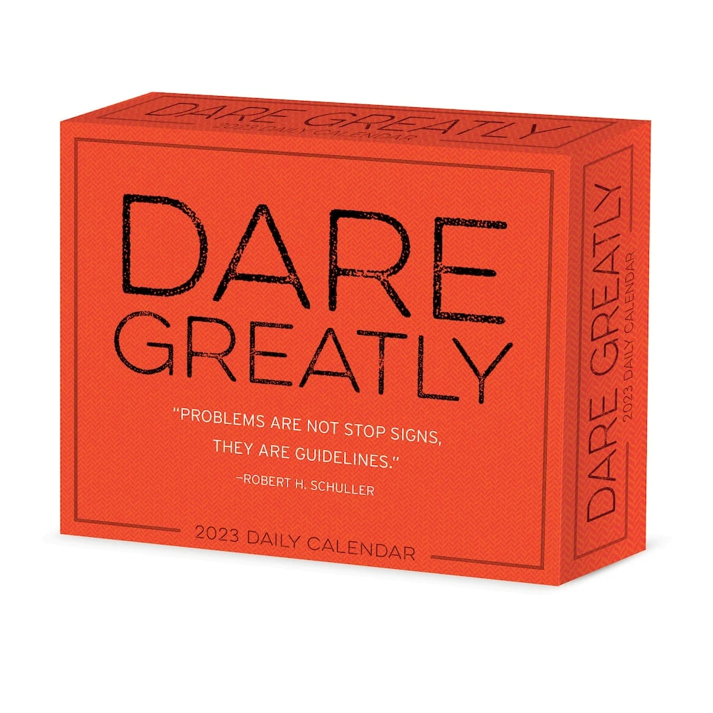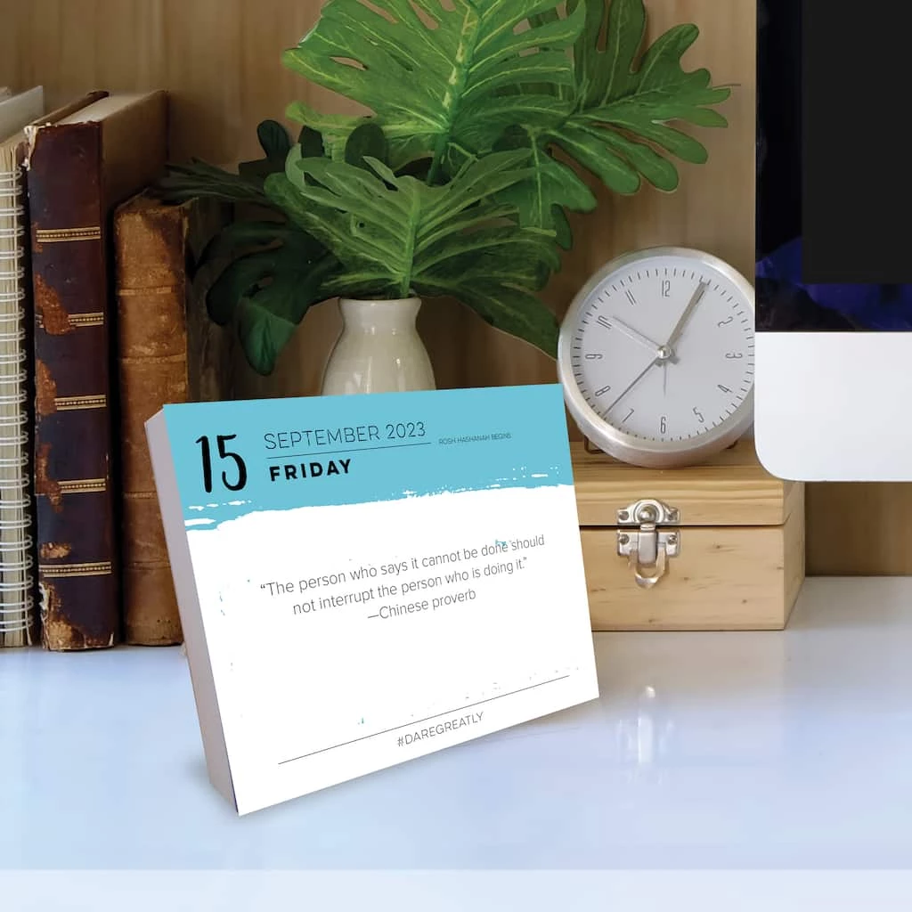 Positivity breeds positivity, habit creates habit. Modern, minimalist design frames monthly quotes of inspiration and their challenge for each of us to dare greatly every day. All major public and culturally significant holidays are included.