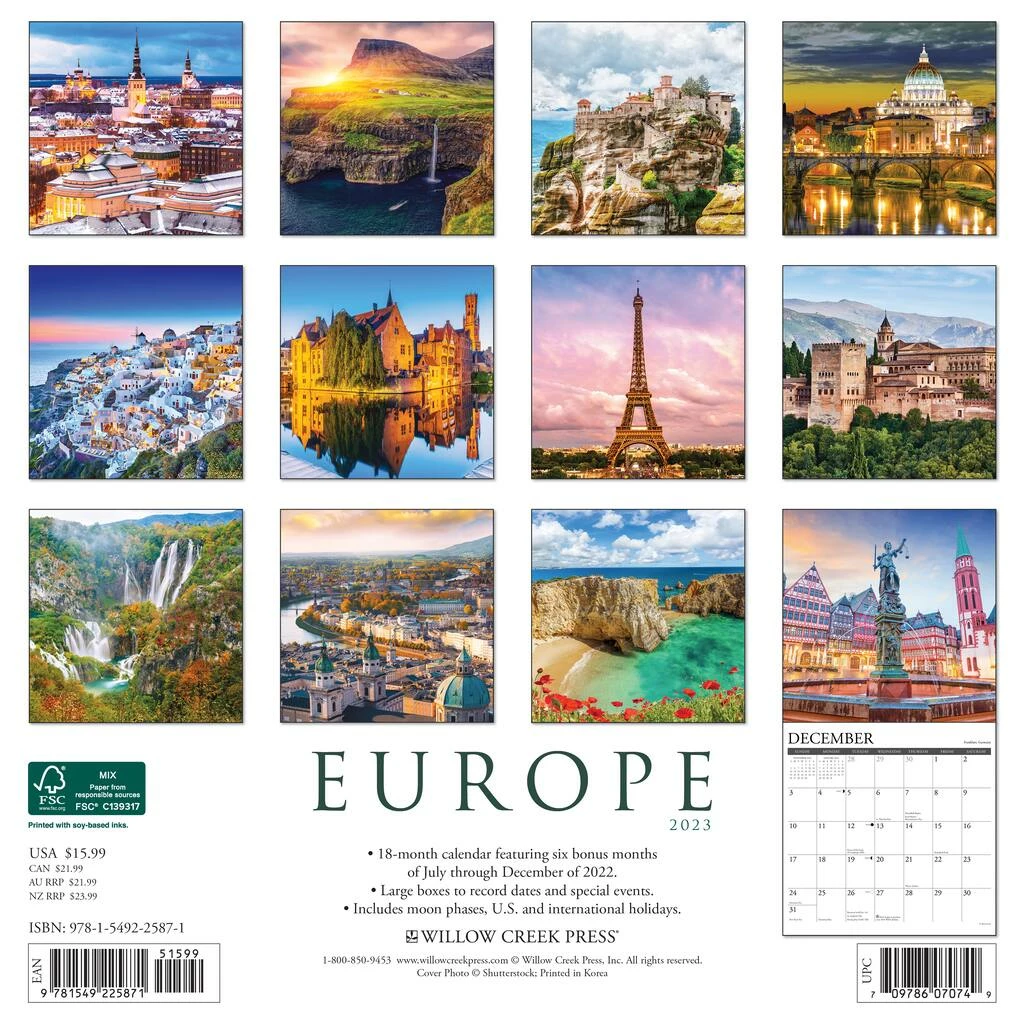 From Sweden to Spain and Ireland to Italy, you’d be hard-pressed to find anyone that doesn’t have a European adventure on their bucket list. Let wanderlust take over as you travel to a new dazzling location each month. Printed with soy-based inks on FSC certified paper, this 12″ x 12″ wall calendar features large monthly grids that offer ample room for jotting notes, along with six bonus months of July through December of 2022. Also includes moon phases (CST), standard U.S. and international holidays.