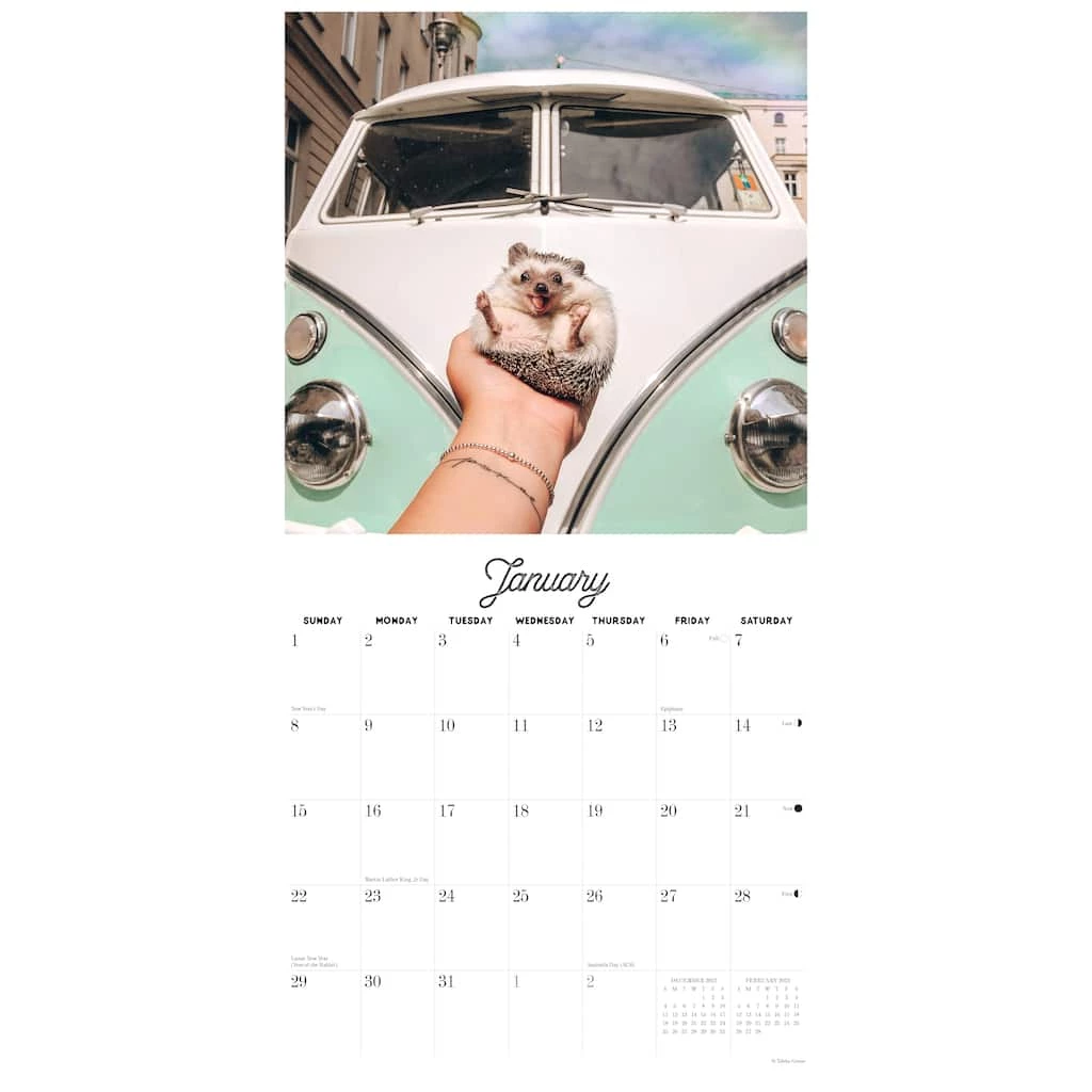 It all started with a hedgehog named Mr. Pokee who taught us how to be happy and smile. Between all the serious things happening in the world and the pressures of everyday life, Herbee the Hedgehog is here to give you a reason to be happy and smile. Over 1.7 million followers from all over the world have been inspired by his message to never lose faith and always follow your heart. Printed with soy-based inks on FSC certified paper, the calendar features large monthly grids that offer ample room for jotting notes, along with six bonus months of July through December of 2022. Also includes moon phases (CST), standard U.S. and international holidays.