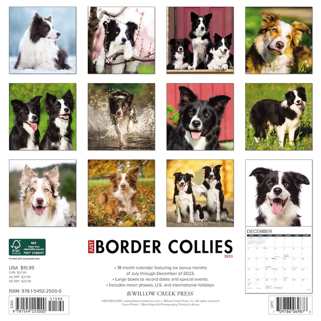 Border Collies are naturally good-natured, hardworking, and energetic, making them a beautiful breed thatβs fun to love. Printed with soy-based inks on FSC certified paper, this 12″ x 12″ wall calendar features large monthly grids that offer ample room for jotting notes, along with six bonus months of July through December of 2020. It also includes moon phases (CST), standard U.S., and international holidays.