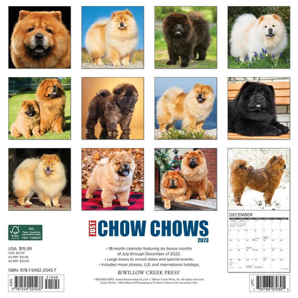 One of the oldest breeds known, Chow Chows are believed to have evolved from the gray wolf. Twelve full-color photographs beautifully display these ardent protectors of home and family. Printed with soy-based inks on FSC certified paper, this 12″ x 12″ wall calendar features large monthly grids that offer ample room for jotting notes, along with six bonus months of July through December of 2022. It also includes moon phases (CST) and standard U.S. and international holidays.