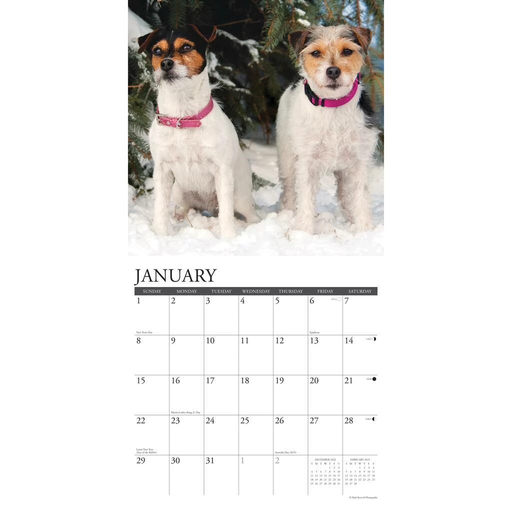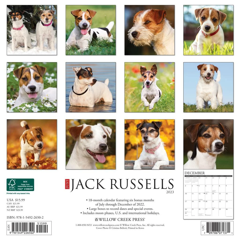 The fun and fearless, plucky and lovable Jack Russell Terrier is celebrated in these twelve cheerful, full color photographs. Printed with soy-based inks on FSC certified paper, this 12″ x 12″ wall calendar features large monthly grids that offer ample room for jotting notes, along with six bonus months of July through December of 2022. Also includes moon phases (CST), standard U.S. and international holidays.
