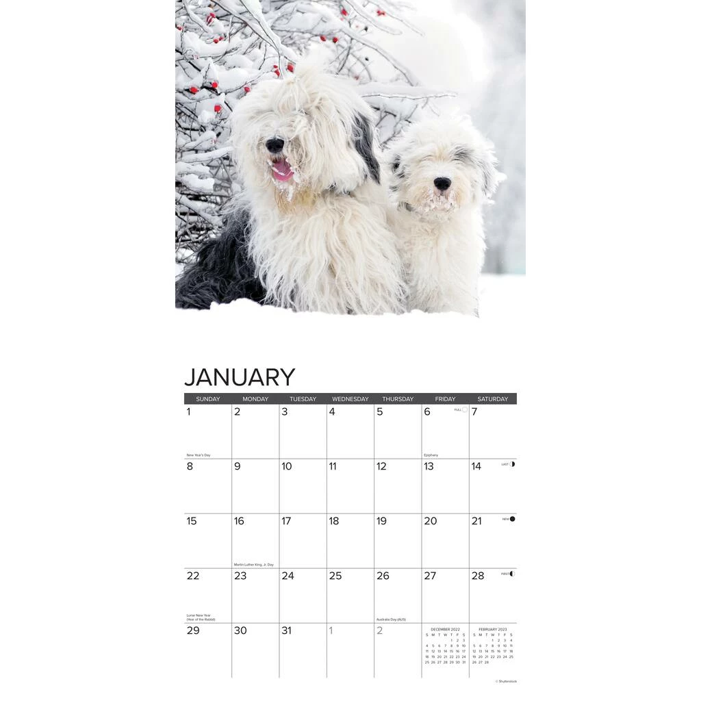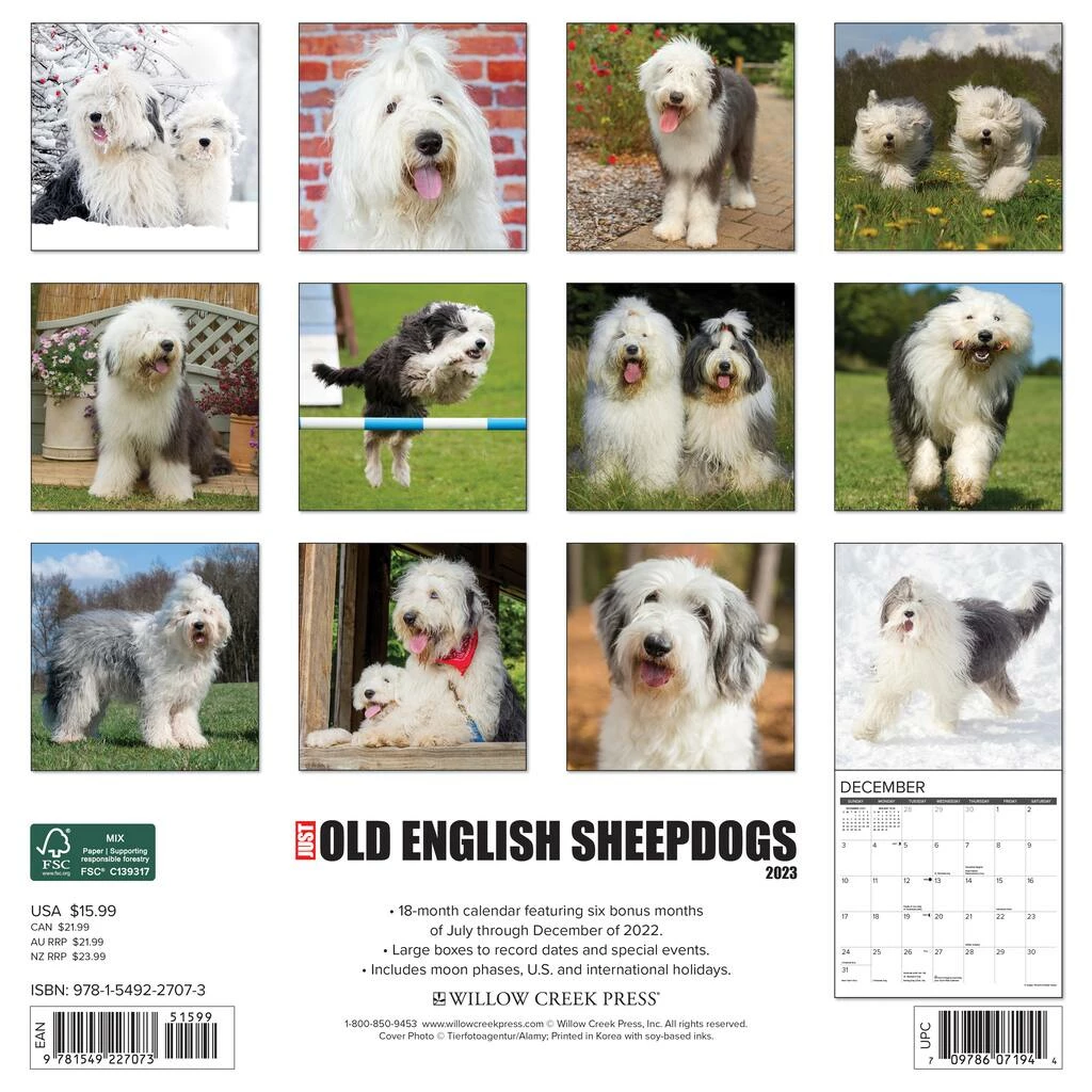 Whether it’s the impossibly fluffy double coat, “bellcrack” bark, or ambling bear-like trot, Old English Sheepdogs are clearly one of a kind. Prized in early industrialist America by the Vanderbuilt and Guggenehim families, the breed sprung from humble origins as a drover, driving sheep and cattle to market from the English countryside. Printed with soy-based inks on FSC certified paper, this 12″ x 12″ wall calendar features large monthly grids that offer ample room for jotting notes, along with six bonus months of July through December of 2022. Also includes moon phases (CST), standard U.S. and international holidays.