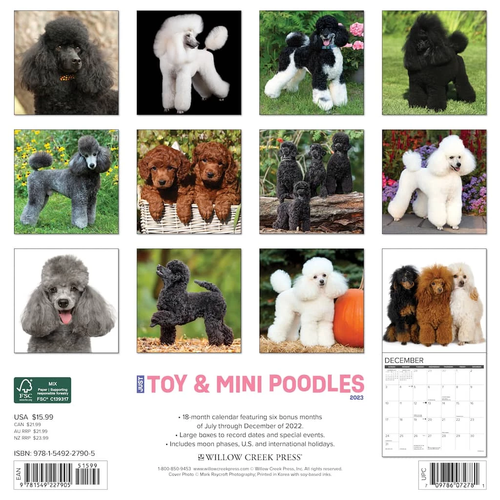 Who can resist these bundles of endless energy and joy? Twelve vivid, full color photographs capture the perky and cheerful nature of toy and miniature poodles. Printed with soy-based inks on FSC certified paper, this 12″ x 12″ wall calendar features large monthly grids that offer ample room for jotting notes, along with six bonus months of July through December of 2022. Also includes moon phases (CST), standard U.S. and international holidays.