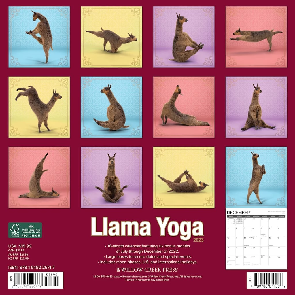 Llamas were awesome to begin with… who knew that they were also aspiring yogis! Join these furry, oh-so-trendy pack animals for their next warrior series. Llamaste. Printed with soy-based inks on FSC certified paper, this 12″ x 12″ wall calendar features large monthly grids that offer ample room for jotting notes, along with six bonus months of July through December of 2022. Also includes moon phases (CST), standard U.S. and international holidays.