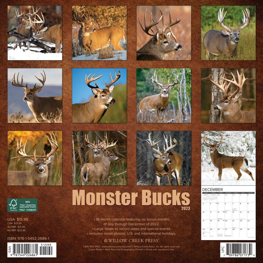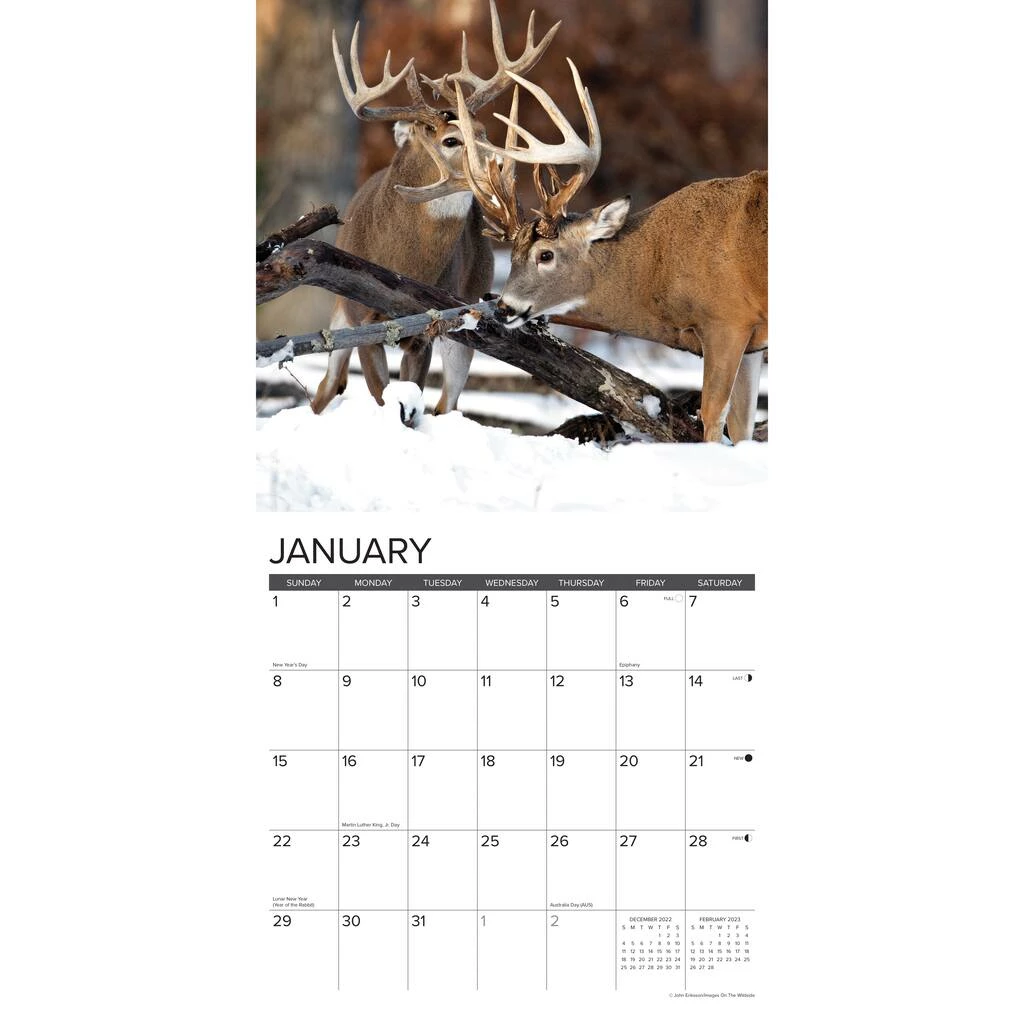 If you’re on the hunt for BIG, beautiful whitetail bucks, this is the calendar for you. Introducing the Superstars of the Whitetail World โ 12 magnificent bucks whose strength, intelligence, and breathtaking racks elevate them into that rarified category of โMonster Buck!โ It’s never been easier to hang a trophy buck in your man cave. Printed with soy-based inks on FSC certified paper, this 12″ x 12″ wall calendar features large monthly grids that offer ample room for jotting notes, along with six bonus months of July through December of 2022. Also includes moon phases (CST), standard U.S. and international holidays.