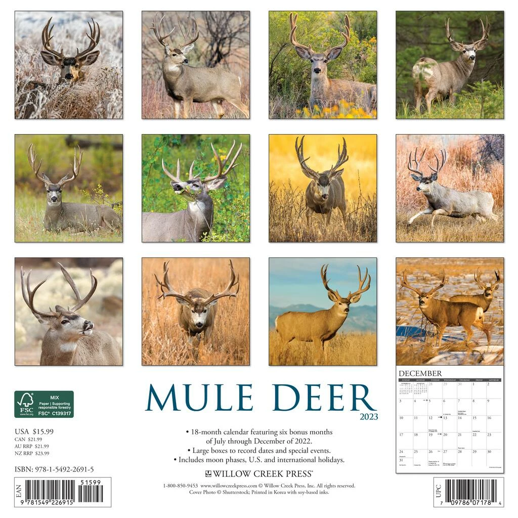 Why wait until autumn to view massive mule deer racks when you can enjoy them all year long? Twelve full color photographs feature stunning “mulie” antlers in this large format wall calendar. Printed with soy-based inks on FSC certified paper, this 12″ x 12″ wall calendar features large monthly grids that offer ample room for jotting notes, along with six bonus months of July through December of 2022. Also includes moon phases (CST), standard U.S. and international holidays.