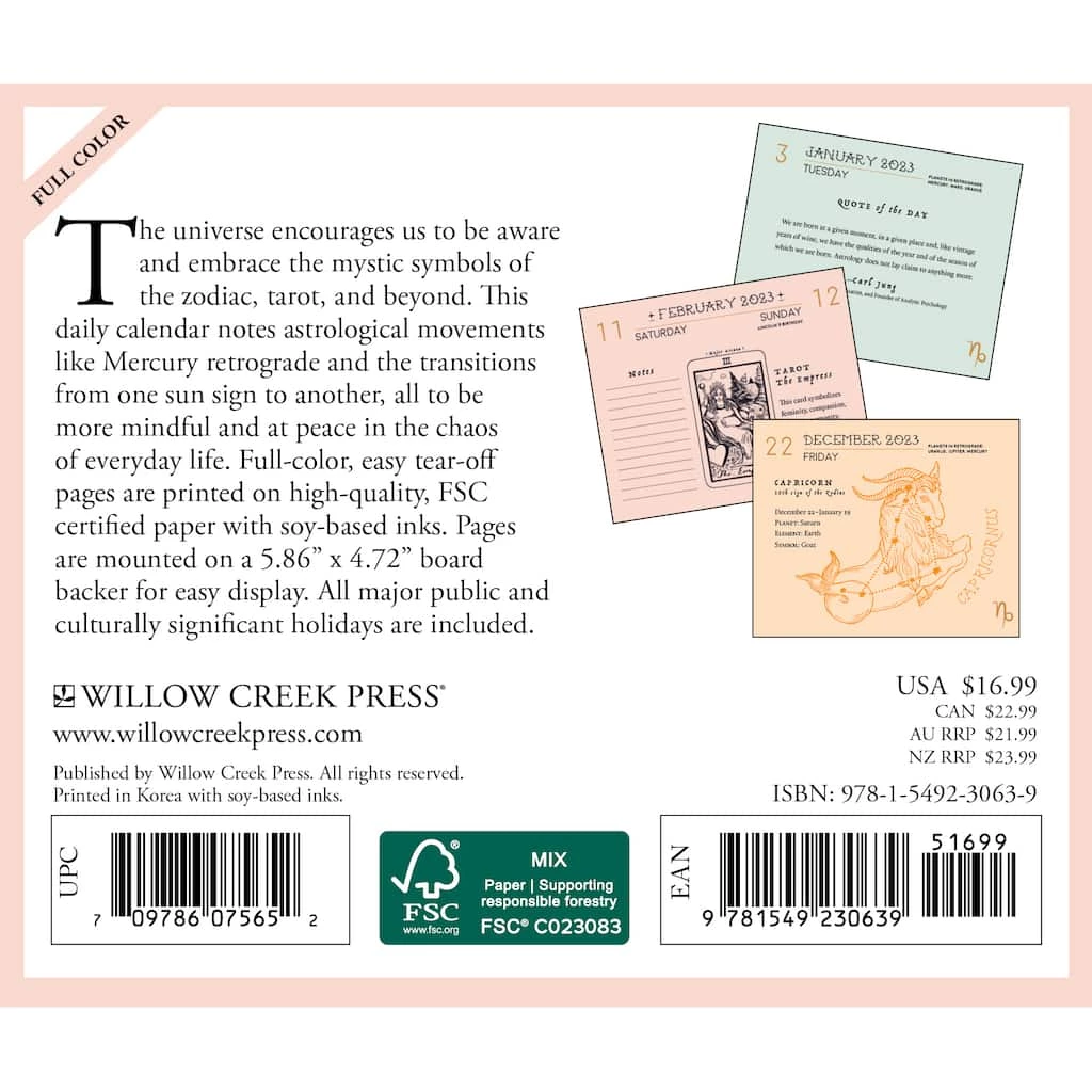 The universe encourages us to be aware and embrace the mystic symbols of the zodiac, tarot, and beyond. This daily calendar notes astrological movements like Mercury retrograde and the transitions from one sun sign to another, all to be more mindful and at peace in the chaos of everyday life. All major public and culturally significant holidays are included.