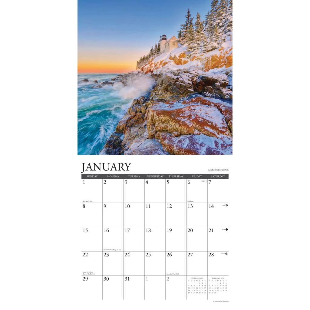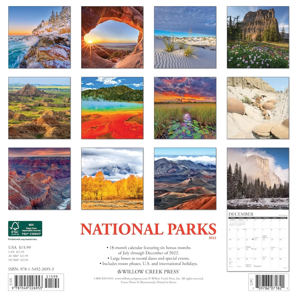 Experience the unmatched beauty and grandeur of our national parks. From Yellowstone to Denali and the Grand Canyon to the Great Smoky Mountains, these treasured, protected lands have continued to amaze and enchant visitors for generations. Printed with soy-based inks on FSC certified paper, this 12″ x 12″ wall calendar features large monthly grids that offer ample room for jotting notes, along with six bonus months of July through December of 2022. Also includes moon phases (CST), standard U.S. and international holidays.