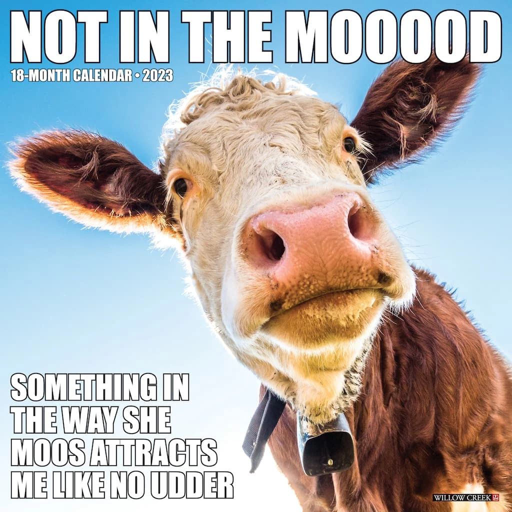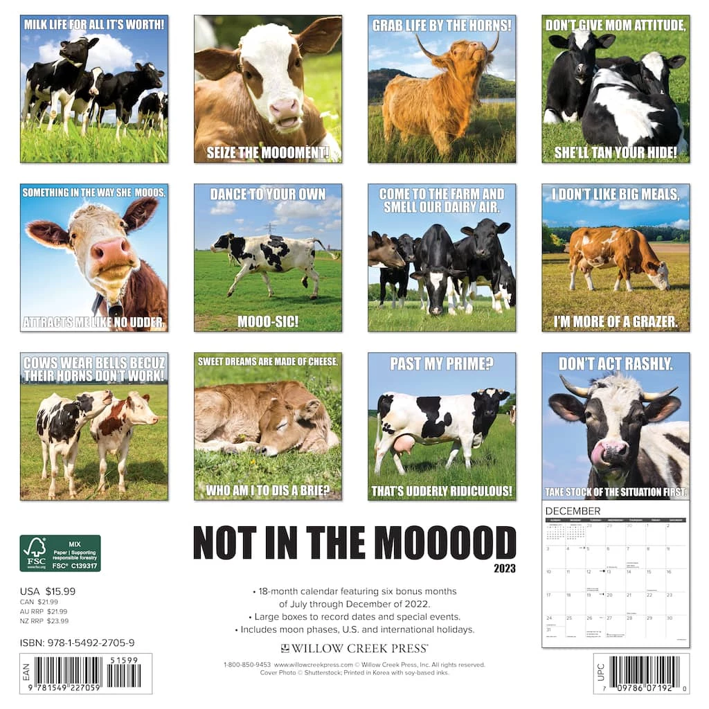 Chewing cud face meets barnyard snark. Each month features a meme-tastic moooood altering bovine, guaranteed to make even the hardest working farmer crack a smile. Printed with soy-based inks on FSC certified paper, this 12″ x 12″ wall calendar features large monthly grids that offer ample room for jotting notes, along with six bonus months of July through December of 2022. Also includes moon phases (CST), standard U.S. and international holidays.
