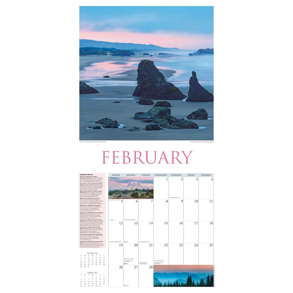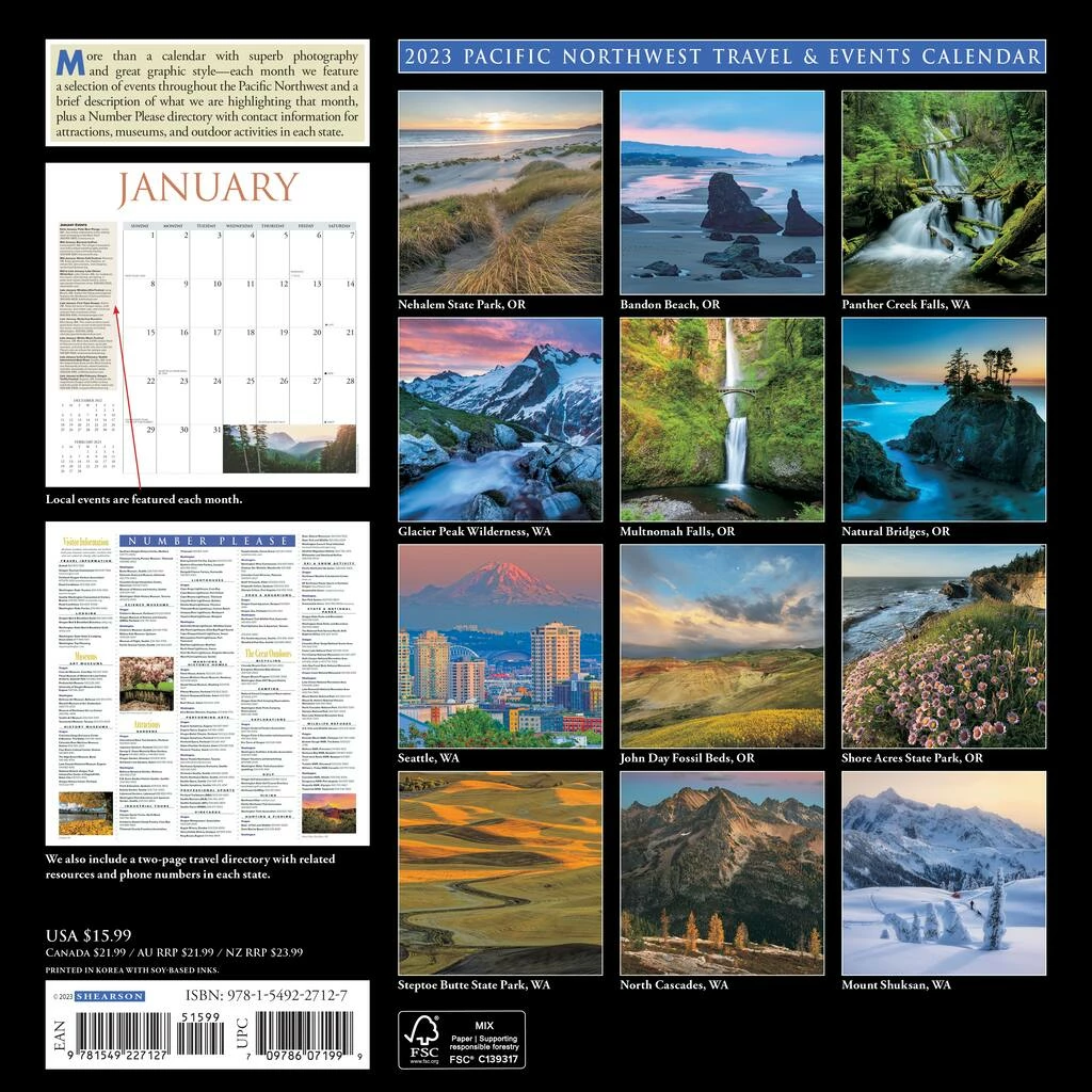 The Pacific Northwest Travel & Events Calendar displays stunning photography from Oregon and Washington. Each month we provide a listing of ten special events that take place throughout the region. As a bonus the calendar includes a 2-page “Number Please” directory with phone numbers and websites for museums, gardens, lighthouse, historic homes and mansions, vineyards, state and national parks and wildlife refuges. The calendar is a terrific planning guide, memento or gift for anyone who has traveled or yearns to travel in the Pacific Northwest. Printed with soy-based inks on FSC certified paper, this 12″ x 12″ wall calendar features large monthly grids that offer ample room for jotting notes, along with moon phases (CST), and standard U.S. and international holidays.