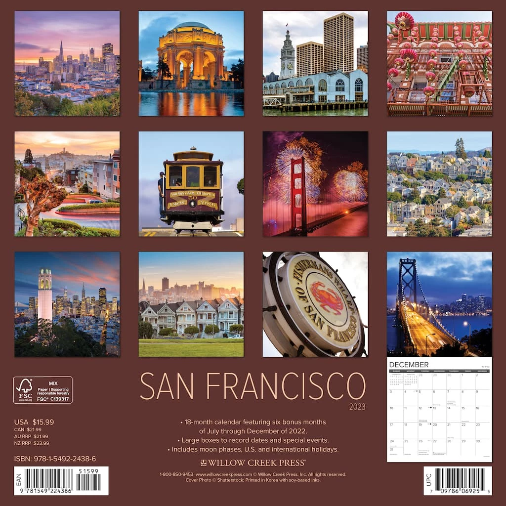 San Francisco’s eclectic architecture, global communities, and iconic landmarks make it the cultural epicenter of Northern California. Stroll through the Dragon Gate to visit America’s oldest Chinatown, hop a cable car through Russian Hill, or ferry over to Alcatraz to enjoy all that makes the “City by the Bay” a true gem to discover. Printed with soy-based inks on FSC certified paper, this 12″ x 12″ wall calendar features large monthly grids that offer ample room for jotting notes, along with six bonus months of July through December of 2022. Also includes moon phases (CST), standard U.S., and international holidays.
