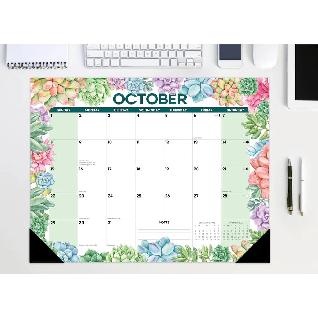 Whether you’re looking to dress up your desk or add some large-scale art to your wall, this is the desk pad calendar for you. The calendar also features a sturdy cardboard backer, punch holes for easy wall display, and corner pockets that will keep the pages flat throughout the year.