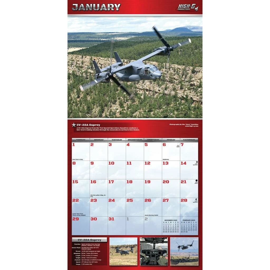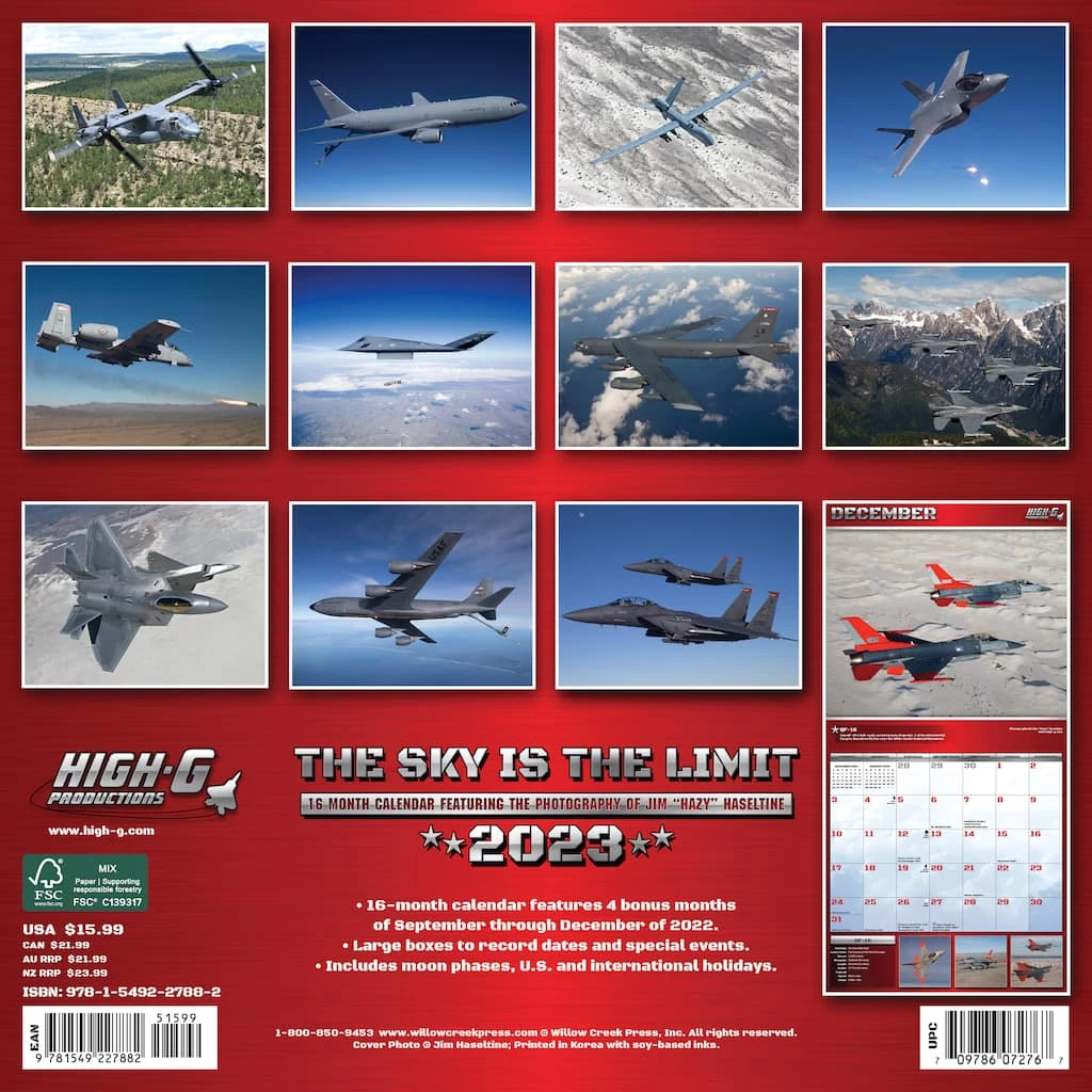 A dazzling array of sleek and powerful jets from the U.S. Air Force and NATO will grace your wall for the entire year. Printed with soy-based inks on FSC certified paper, this 12″ x 12″ wall calendar features large monthly grids that offer ample room for jotting notes, along with four bonus months of September through December of 2022. Also includes moon phases (CST), standard U.S. and international holidays.