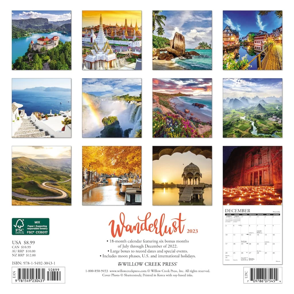 Surreal, yet vivid, these stunning images of wonder and mystery will make even the most ardent homebody ache for a globe-trotting adventure. Printed with soy-based inks on FSC certified paper, this 7″ x 7″ wall calendar features monthly grids that offer ample room for jotting notes, along with six bonus months of July through December of 2022. Also includes moon phases (CST), standard U.S., and international holidays.