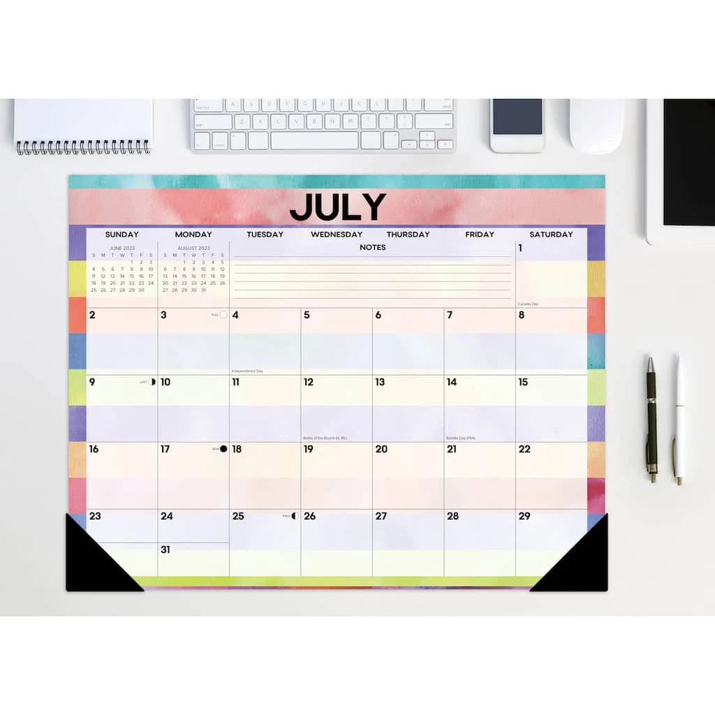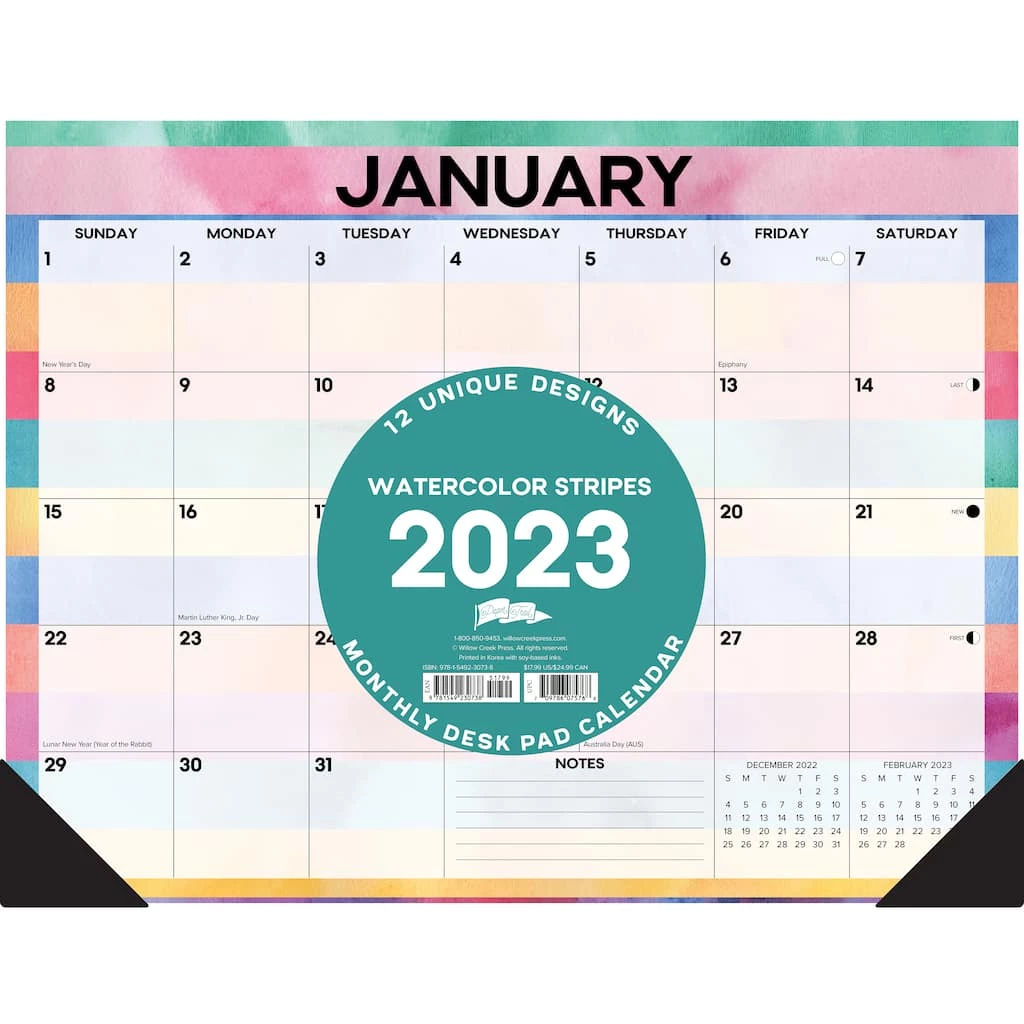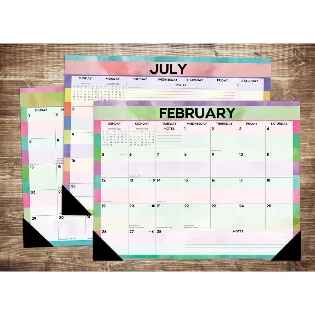Whether you’re looking to dress up your desk or add some large-scale art to your wall, this is the desk pad calendar for you. The calendar also features a sturdy cardboard backer, punch holes for easy wall display, and corner pockets that will keep the pages flat throughout the year.