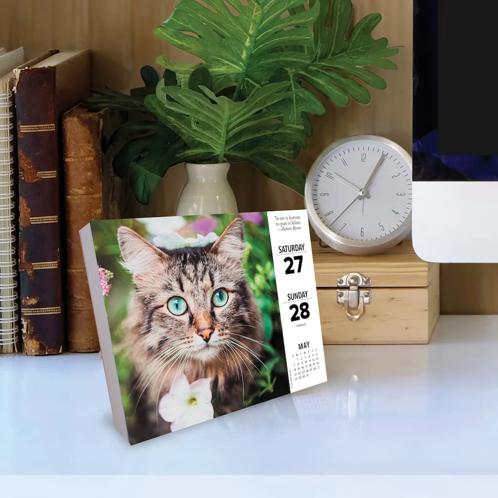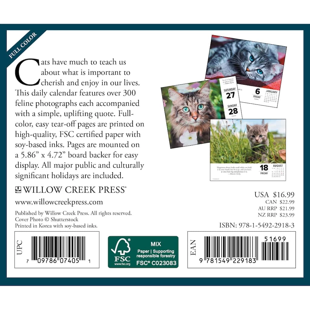 Cats have much to teach us about what is important to cherish, defend, avoid and enjoy in our lives. Each of the 310 full-color feline photographs in this daily calendar includes a simple, uplifting, daily lesson to live by. Full-color images on easy tear-off pages are printed on high quality, FSC certified paper with soy-based inks. Pages are mounted on a stand for easy display.