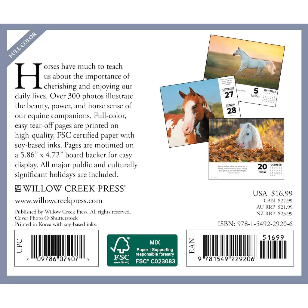 Horses have much to teach us about what is important in life to cherish, defend, avoid and enjoy in our daily lives. Each of the 314 full-color equine photographs in this delightful daily calendar includes a simple, uplifting, daily lesson to live by.