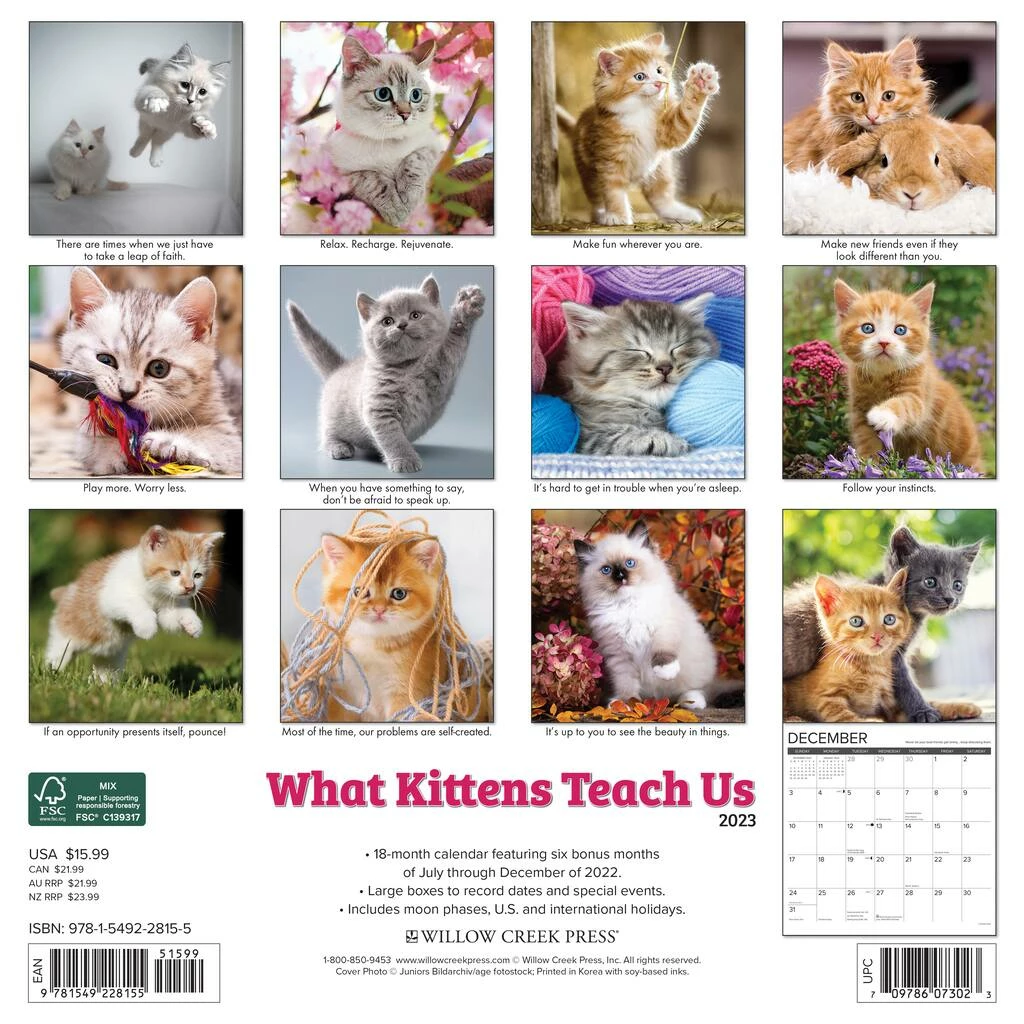 Twelve adorable full color photographs of kittens with accompanying text remind us of what is important to avoid, defend, cherish and enjoy in our lives. Printed with soy-based inks on FSC certified paper, this 12″ x 12″ wall calendar features large monthly grids that offer ample room for jotting notes, along with six bonus months of July through December of 2022. Also includes moon phases (CST), standard U.S. and international holidays.