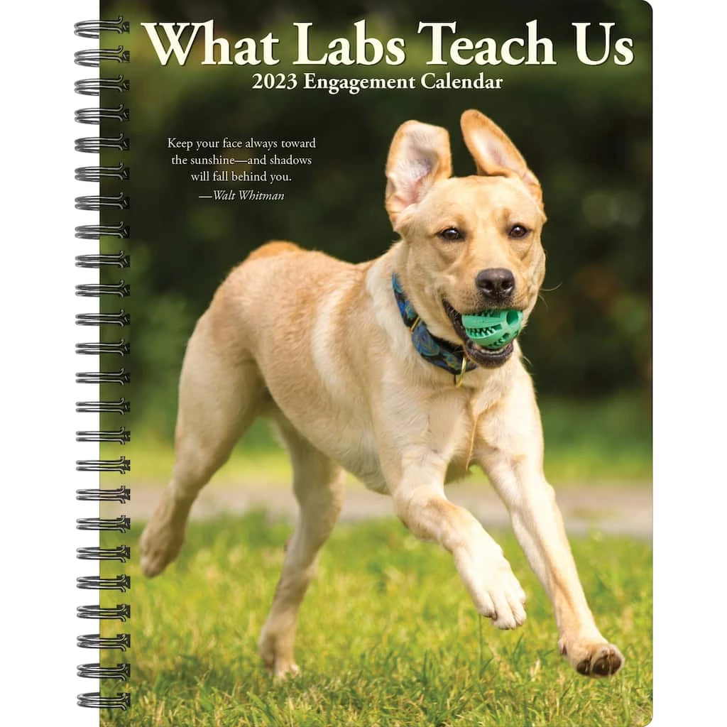 Labs have an innate understanding of the joys of life that make us happy just being around them. Delightful full-color photographs are paired with Lab life lessons to help us better appreciate and understand the gift of being alive. Printed with soy-based inks on FSC certified paper, this engagement calendar includes a protective cover sleeve, Wire-O binding, and a handy inner pocket for organizing receipts and loose papers. Its 12-month, week-per-page format includes a notes section with extra notes pages in the back to help organize your busy life. Also includes moon phases (CST), standard U.S., and international holidays.