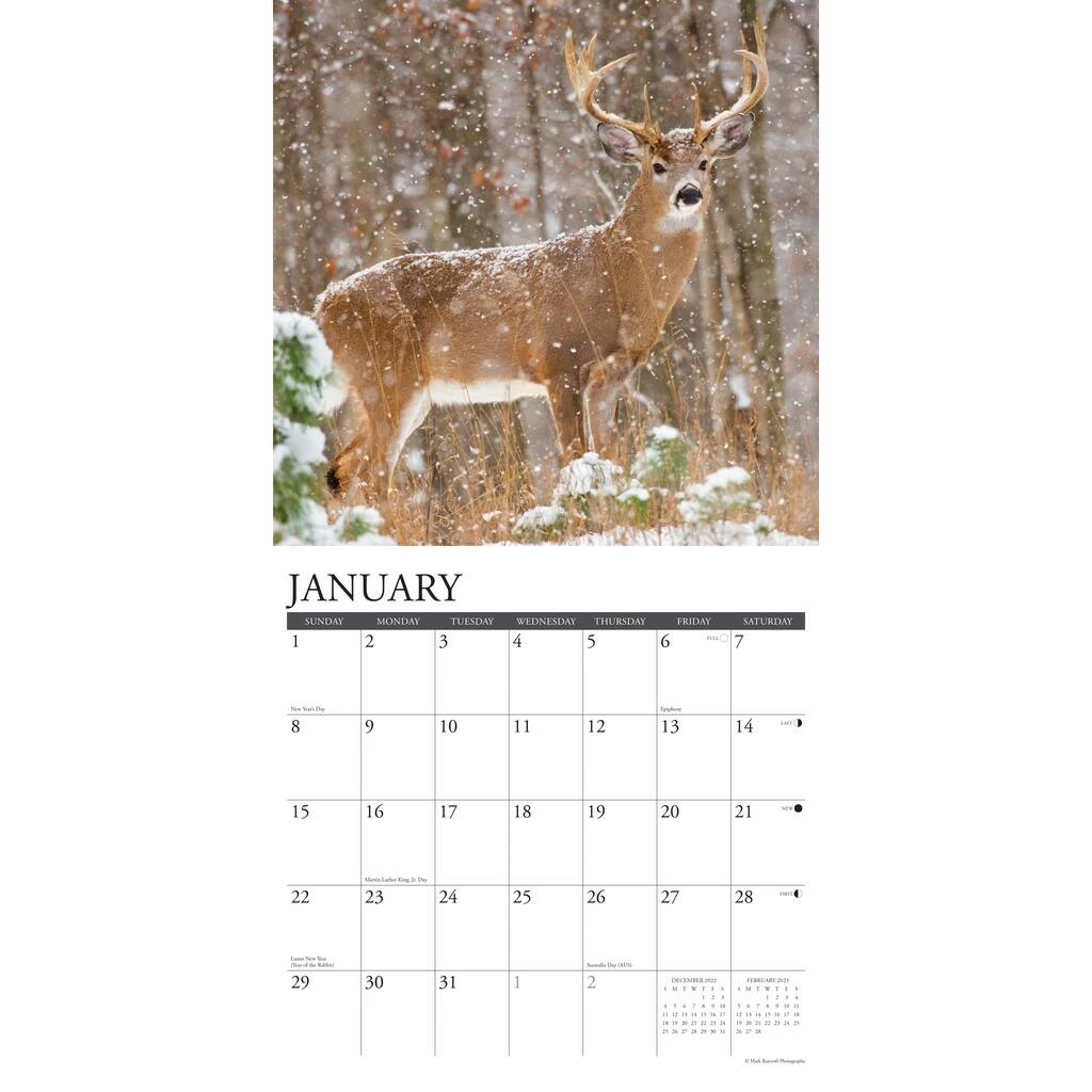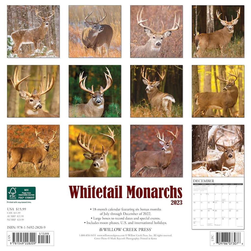 Twelve remarkable full color photographs portray whitetail bucks sporting among the most magnificent antlers in North America. Printed with soy-based inks on FSC certified paper, this 12″ x 12″ wall calendar features large monthly grids that offer ample room for jotting notes, along with six bonus months of July through December of 2022. Also includes moon phases (CST), standard U.S. and international holidays.