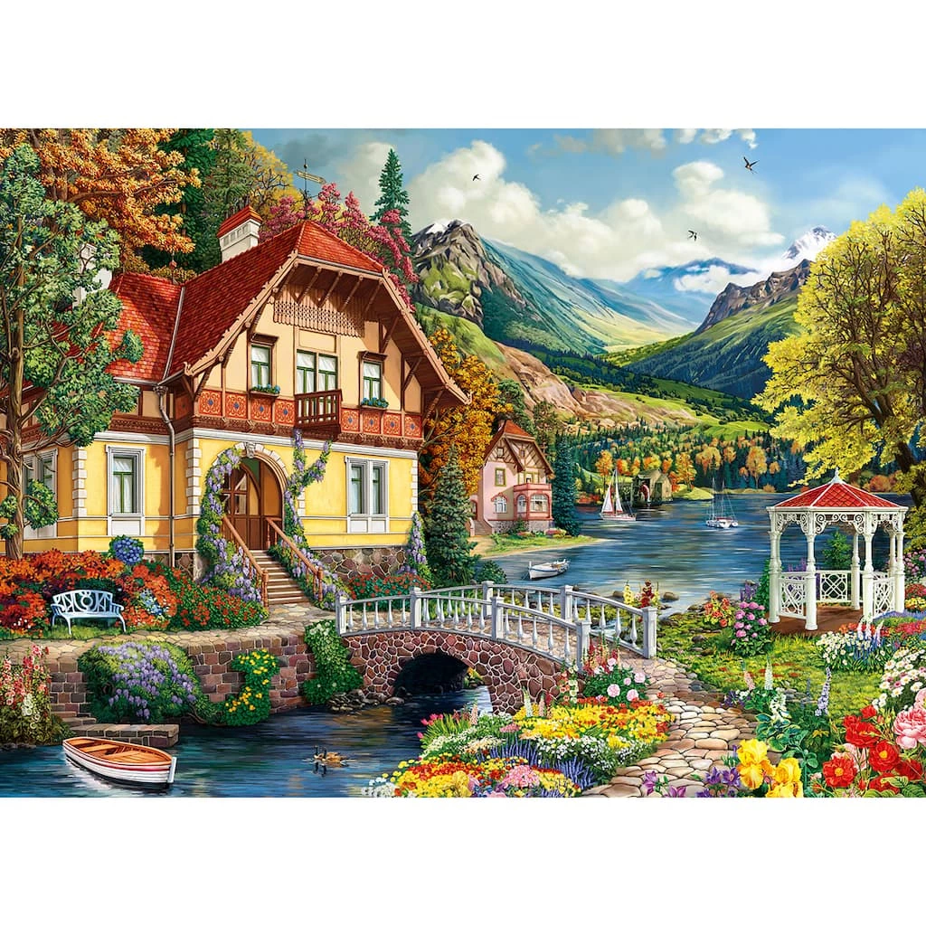 Picturesque and welcoming, this Bavarian-style chalet embodies an escape to springtime. Cross the charming footbridge to follow the cobblestones along a rainbow of manicured perennials, or settle into a shaded spot under the gazebo as boats of leisure float by on crystal clear waters.