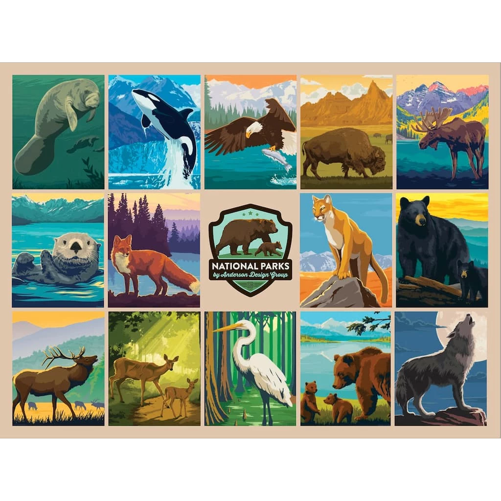 Whether it’s the towering Redwoods, snow-capped mountain ranges, or chance encounters with majestic wildlife, it’s easy to see that you’re in the presence of greatness while visiting our country’s National Parks. From manatees to orcas and bison to black bears, Anderson Design Group captures the nobility and beauty of 14 creatures that call the wilderness their home. Proudly made in the U.S.A., this beautiful 1,000 piece jigsaw puzzle features a precision cut image on a high-quality blue board. The fully interlocking pieces are poly-bagged to insure their protection inside the shelf-friendly, 12″ x 10″ box.