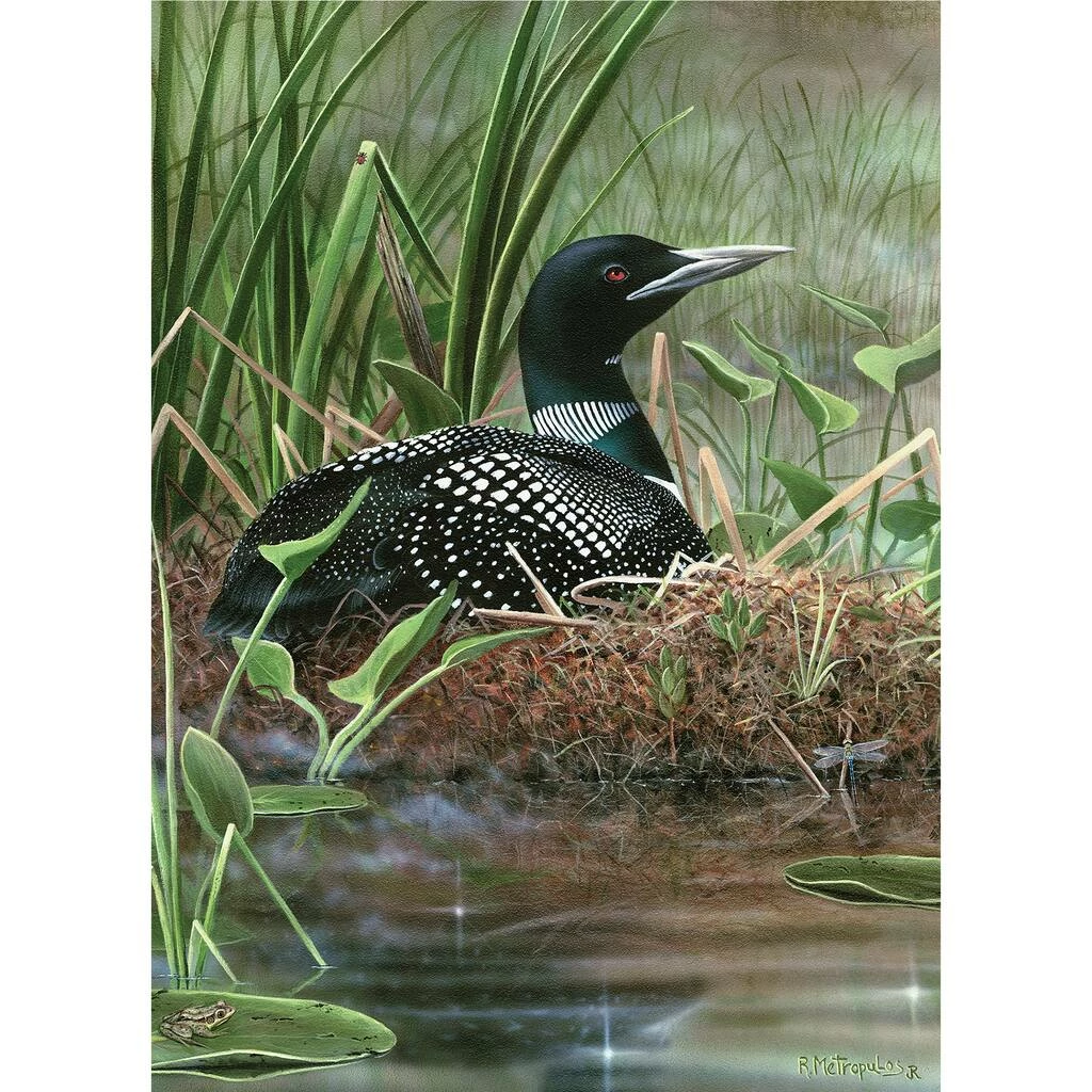 Northwoods beauty reveals itself in many forms, but none more so than the sights and sounds of the common loon. This beautiful painting by Robert Metropulos perfectly captures the watchfulness and grace of a loon parent awaiting the arrival of peeping chicks. This delightful 1,000 piece puzzle features a precision cut image on high-quality blue board.